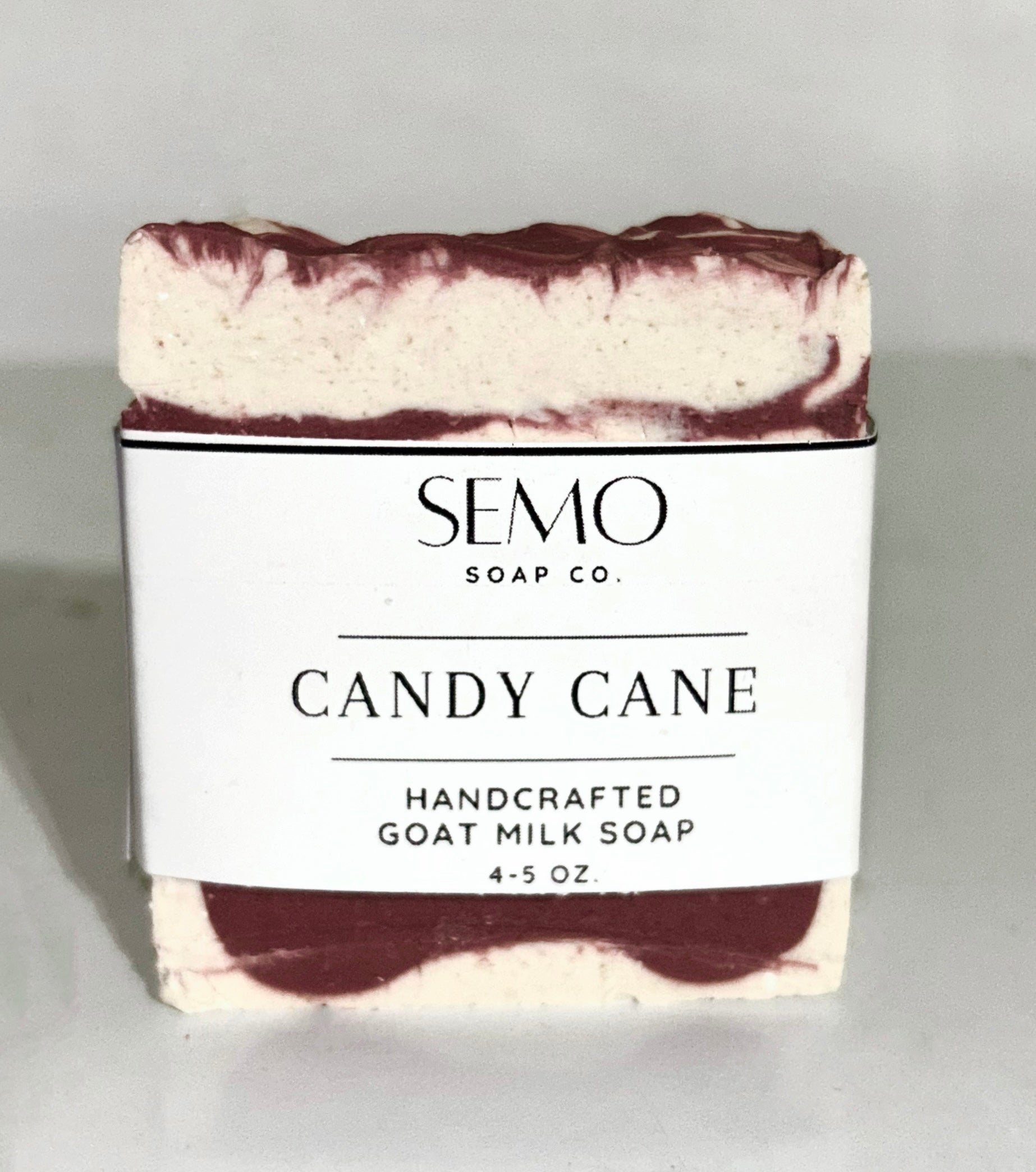 Our candy cane goat milk soap hydrates and nourishes the skin it smells like peppermint and has notes of sweet vanilla. This scent is perfect for the holiday season and refreshing to the skin.